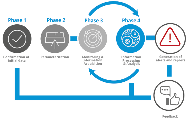 The Digital Brand Monitoring service is carried out in the following phases: